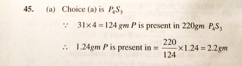 1.24 g P is present in 2.2 g of (a) P4S3 (b) P2S2 (c) PS2 (d) P2S4 1.24 g P is present in 2.2 g of (a) P4S3 (b) P2S2 (c) PS2 (d) P2S4 November 22, 2020 Category: Uncategorised (JEE Advanced Physics by BM Sharma + GMP Solutions) , Facebook Messenger WhatsApp Share this:TwitterFacebook Related