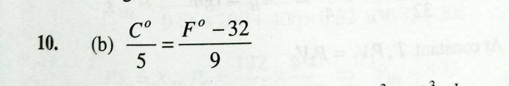 1 degree C rise in temperature is equal to rise of (a) 1 degree F (b) 9/5 degree F (c) 5/9 degree F (d) 33 degree F 1 degree C rise in temperature is equal to rise of (a) 1 degree F (b) 9/5 degree F (c) 5/9 degree F (d) 33 degree F February 10, 2021 Category: Uncategorised (JEE Advanced Physics by BM Sharma + GMP Solutions) , Facebook Messenger WhatsApp Share this:TwitterFacebook Related