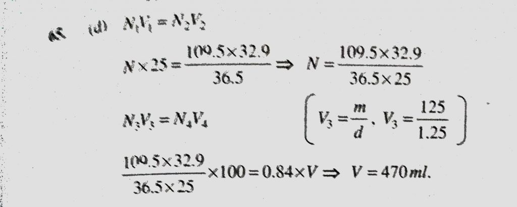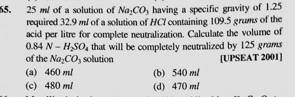 25 ml of a solution of Na2CO3 having a specific gravity of 1.25 required 32.9 ml of a solution of HCl containing 109.5 grams of the acid per litre for complete neutralization. Calculate the volume of 25 ml of a solution of Na2CO3 having a specific gravity of 1.25 required 32.9 ml of a solution of HCl containing 109.5 grams of the acid per litre for complete neutralization. Calculate the volume of December 7, 2020 Category: Uncategorised (JEE Advanced Physics by BM Sharma + GMP Solutions) , Facebook Messenger WhatsApp Share this:TwitterFacebook Related