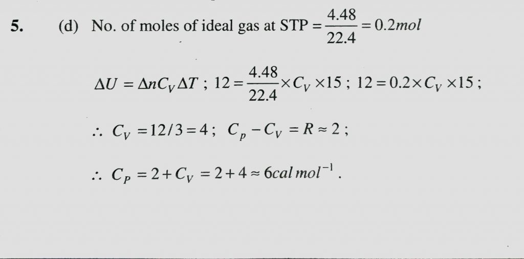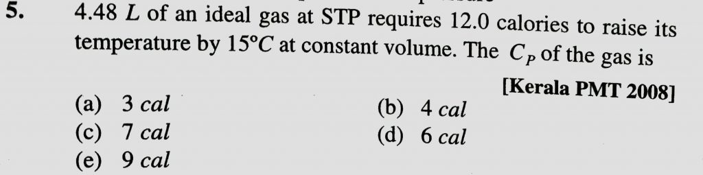 4.48 L of an ideal gas at STP requires 12.0 calorioes to raise its temperature by 15 degree C at constant volume. THe Cp of the gas is (a) 3 cal (b) 4 cal (c) 7 cal (d) 6 cal (d) 9 cal 4.48 L of an ideal gas at STP requires 12.0 calorioes to raise its temperature by 15 degree C at constant volume. THe Cp of the gas is (a) 3 cal (b) 4 cal (c) 7 cal (d) 6 cal (d) 9 cal February 12, 2021 Category: Uncategorised (JEE Advanced Physics by BM Sharma + GMP Solutions) , Facebook Messenger WhatsApp Share this:TwitterFacebook Related
