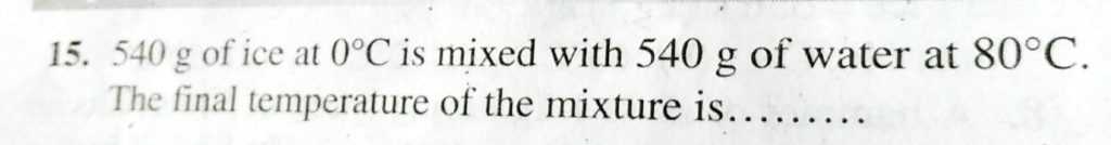 540 g of ice at 0 degree C is mixed with 540 g of water at 80 degree C . The final temperature of the mixture is ….. 540 g of ice at 0 degree C is mixed with 540 g of water at 80 degree C . The final temperature of the mixture is ..... October 3, 2020 Category: Uncategorised (JEE Advanced Physics by BM Sharma + GMP Solutions) , Facebook Messenger WhatsApp Share this:TwitterFacebook Related