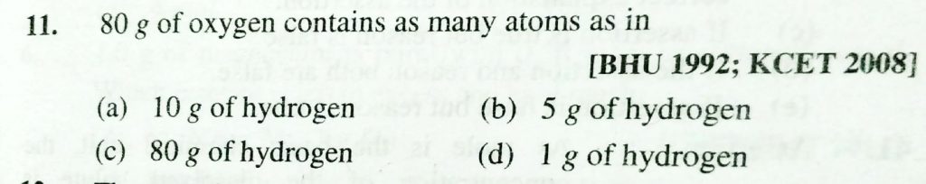 80 g of oxygen contains as many atoms as in (a) 10g of hydrogen (b) 5g of hydrogen (c) 80 g of hydrogen (d) 1 g of hydrogen 80 g of oxygen contains as many atoms as in (a) 10g of hydrogen (b) 5g of hydrogen (c) 80 g of hydrogen (d) 1 g of hydrogen November 22, 2020 Category: Uncategorised (JEE Advanced Physics by BM Sharma + GMP Solutions) , Facebook Messenger WhatsApp Share this:TwitterFacebook Related