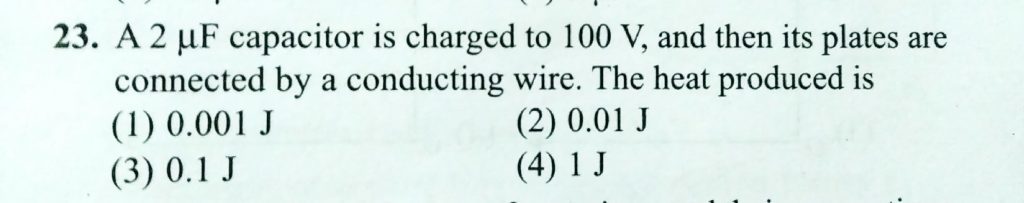 A 2 muF capacitor is charged to 100 V , and then its plates are cponnected by a conducting wire. The heat produced is A 2 muF capacitor is charged to 100 V and then its plates are cponnected by a conducting wire. The heat produced is November 7, 2020 Category: Uncategorised (JEE Advanced Physics by BM Sharma + GMP Solutions) , Facebook Messenger WhatsApp Share this:TwitterFacebook Related