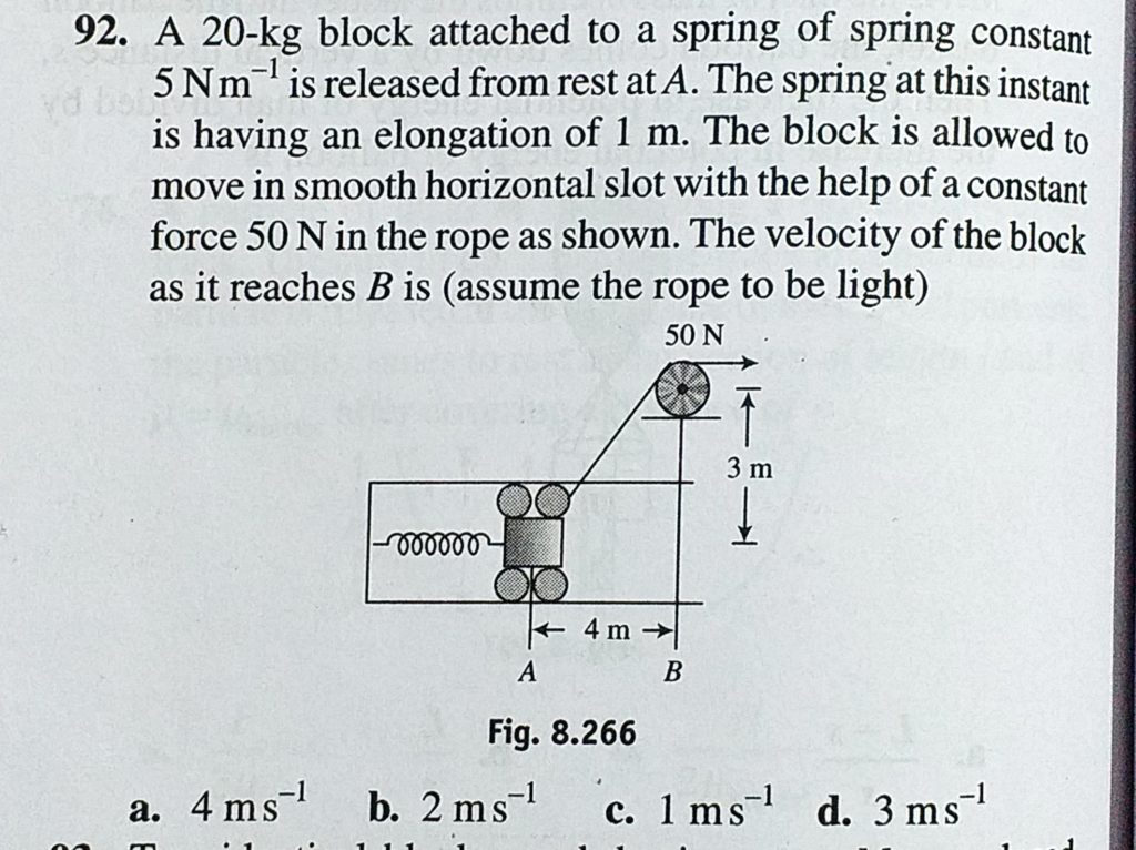 A 20 kg block attached to a string of spring constant 5 N/m is released from rest at A. The spring at this instant is having an elongation of 1 m. The block is allowed to move in smooth horizontal A 20 kg block attached to a string of spring constant 5 N/m is released from rest at A. The spring at this instant is having an elongation of 1 m. The block is allowed to move in smooth horizontal October 4, 2020 Category: Uncategorised (JEE Advanced Physics by BM Sharma + GMP Solutions) , Facebook Messenger WhatsApp Share this:TwitterFacebook Related