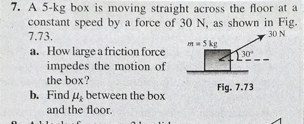 A 5 kg box is moving straight across the floor at a constant speed by a force of 30 N, as shown in Fig. 7.73. A 5 kg box is moving straight across the floor at a constant speed by a force of 30 N as shown in Fig. 7.73. September 30, 2020 Category: Uncategorised (JEE Advanced Physics by BM Sharma + GMP Solutions) , Facebook Messenger WhatsApp Share this:TwitterFacebook Related