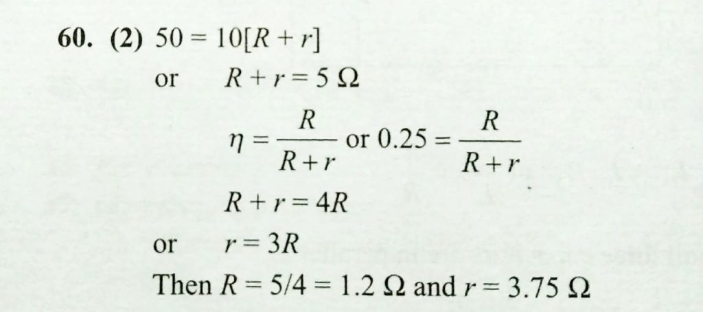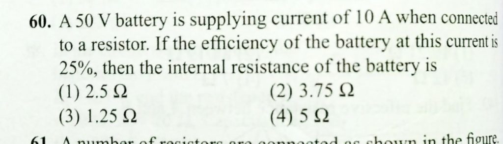 A 50 V battery is supplying current of 10 amp when connected to a resistor. If the efficiency of battery at this current is 25%. Then internal resistance of battery is:- A 50 V battery is supplying current of 10 amp when connected to a resistor. If the efficiency of battery at this current is 25%. Then internal resistance of battery is:- November 11, 2020 Category: Uncategorised (JEE Advanced Physics by BM Sharma + GMP Solutions) , Facebook Messenger WhatsApp Share this:TwitterFacebook Related
