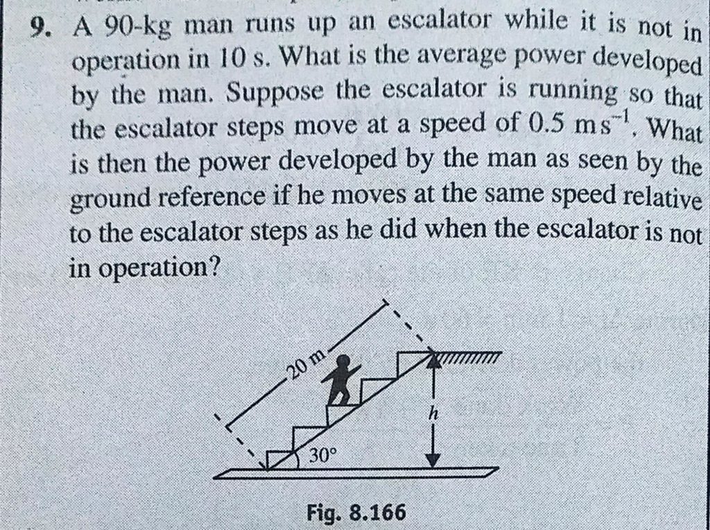 A 90 kg man runs up an escalator while it is not in operation in 10 s. What is the average power developed by the man. Suppose the escalator is running so that the escalator steps move at A 90 kg man runs up an escalator while it is not in operation in 10 s. What is the average power developed by the man. Suppose the escalator is running so that the escalator steps move at October 3, 2020 Category: Uncategorised (JEE Advanced Physics by BM Sharma + GMP Solutions) , Facebook Messenger WhatsApp Share this:TwitterFacebook Related