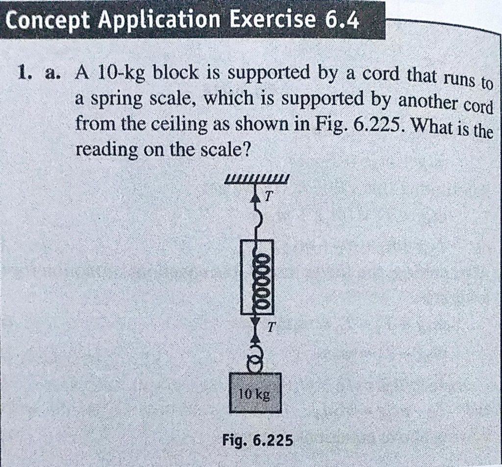 a. A 10 kg block is supported by a cord that runs to a spring scale, which is supported by another cord from the ceiling as shown in Fig. 6.225. What is the reading on the scale? a. A 10 kg block is supported by a cord that runs to a spring scale which is supported by another cord from the ceiling as shown in Fig. 6.225. What is the reading on the scale? September 28, 2020 Category: Uncategorised (JEE Advanced Physics by BM Sharma + GMP Solutions) , Facebook Messenger WhatsApp Share this:TwitterFacebook Related
