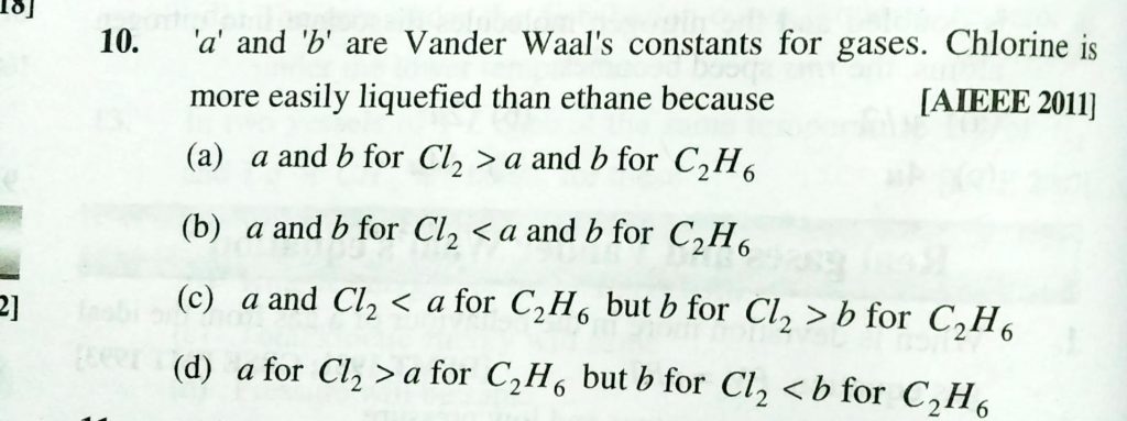 ‘a’ and ‘b’ are Vander waal’s constants for gases. chlorine is more easily liquified than ethane bec ause 'a' and 'b' are Vander waal's constants for gases. chlorine is more easily liquified than ethane because February 12, 2021 Category: Uncategorised (JEE Advanced Physics by BM Sharma + GMP Solutions) , Facebook Messenger WhatsApp Share this:TwitterFacebook Related