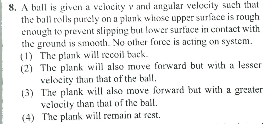 A ball is given a velocity v and angular velocity such that the ball rolls purely on a plank whose upper surface is rough enough to prevent slipping but lower surface contact with the ground is smooth. No other force is acting on system. A uniform circular disc of mass M and radius R rolls without slipping on a horizontal surface. If the velocity of its centre is v0 then the total angular momentum of the disc about a fixed point P at a height 3/2 R above the centre C. September 29, 2020 Category: Uncategorised (JEE Advanced Physics by BM Sharma + GMP Solutions) , Facebook Messenger WhatsApp Share this:TwitterFacebook Related