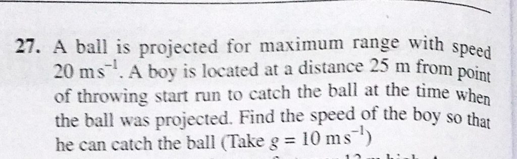 A ball is projected for maximum range with speed 20 m/s. A boy is located at a distance 25 m from point of throwing start run to catch the ball at the time when the ball was A ball is projected for maximum range with speed 20 m/s. A boy is located at a distance 25 m from point of throwing start run to catch the ball at the time when the ball was September 22, 2020 Category: Uncategorised (JEE Advanced Physics by BM Sharma + GMP Solutions) , Facebook Messenger WhatsApp Share this:TwitterFacebook Related