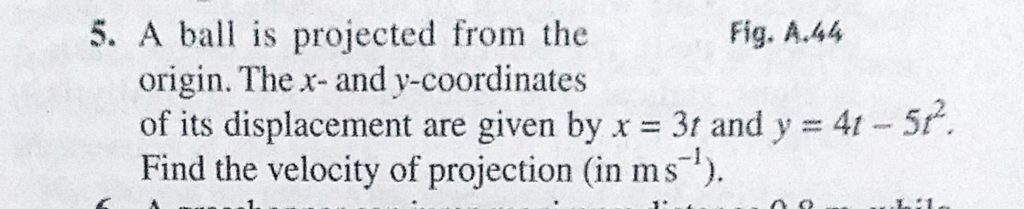 A ball is projected from the origin. The x and y coordinates of its displacement are given by x = 3t and y = 4t – 5t^2. Find the velocity of projection A ball is projected from the origin. The x and y coordinates of its displacement are given by x = 3t and y = 4t - 5t^2. Find the velocity of projection September 25, 2020 Category: Uncategorised (JEE Advanced Physics by BM Sharma + GMP Solutions) , Facebook Messenger WhatsApp Share this:TwitterFacebook Related