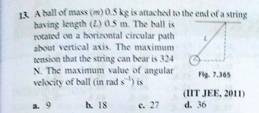 A ball of mass (m) 0.5 kg is attached to the end of a string having length (L) 0.5 m. The ball is rotated on a horizontal circular path about vertical axis. The maximum tension that the A ball of mass (m) 0.5 kg is attached to the end of a string having length (L) 0.5 m. The ball is rotated on a horizontal circular path about vertical axis. The maximum tension that the October 2, 2020 Category: Uncategorised (JEE Advanced Physics by BM Sharma + GMP Solutions) , Facebook Messenger WhatsApp Share this:TwitterFacebook Related