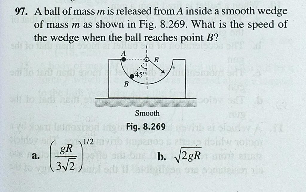 A ball of mass m is released from A inside a smooth wedge of mass m as shown in Fig. 8.269. What is the speed of the wedge when the ball reaches point B? A ball of mass m is released from A inside a smooth wedge of mass m as shown in Fig. 8.269. What is the speed of the wedge when the ball reaches point B? October 4, 2020 Category: Uncategorised (JEE Advanced Physics by BM Sharma + GMP Solutions) , Facebook Messenger WhatsApp Share this:TwitterFacebook Related