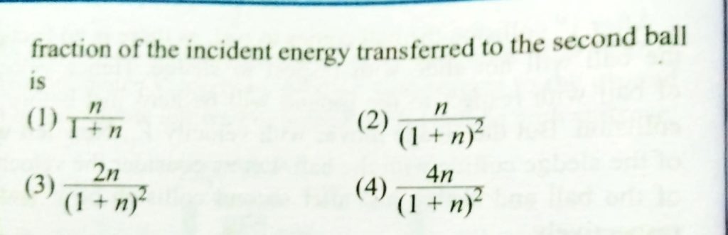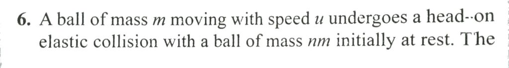 A ball of mass ‘m’ moving with speed ‘u’ undergoes a head-on elastic collision with a ball of mass ‘nm’ initially at rest. Find the fraction of the incident energy transferred to the second ball. A ball of mass 'm' moving with speed 'u' undergoes a head-on elastic collision with a ball of mass 'nm' initially at rest. Find the fraction of the incident energy transferred to the second ball. September 22, 2020 Category: Uncategorised (JEE Advanced Physics by BM Sharma + GMP Solutions) , Facebook Messenger WhatsApp Share this:TwitterFacebook Related
