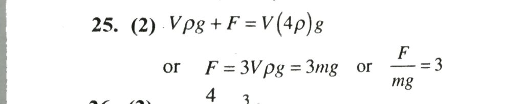 A ball rises to the surface of a liquid with constant velocity. The density of the liquid is four time the density of the material of the ball. the frictional force of the liquid on the rising ball is greater than the weight of the ball by a factor of