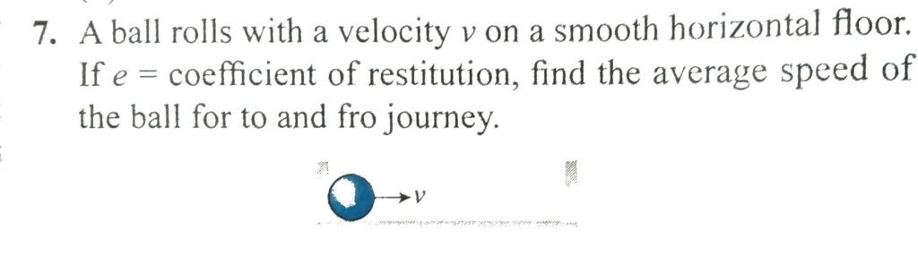 A ball rolls with a velocity v on a smooth horizontal floor. If e = coefficient of restitution, find the average speed of the ball for to and fro journey. A ball rolls with a velocity v on a smooth horizontal floor. If e = coefficient of restitution find the average speed of the ball for to and fro journey. September 22, 2020 Category: Uncategorised (JEE Advanced Physics by BM Sharma + GMP Solutions) , Facebook Messenger WhatsApp Share this:TwitterFacebook Related