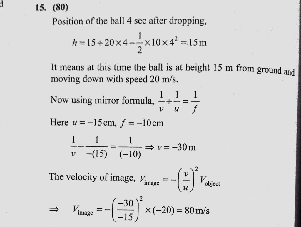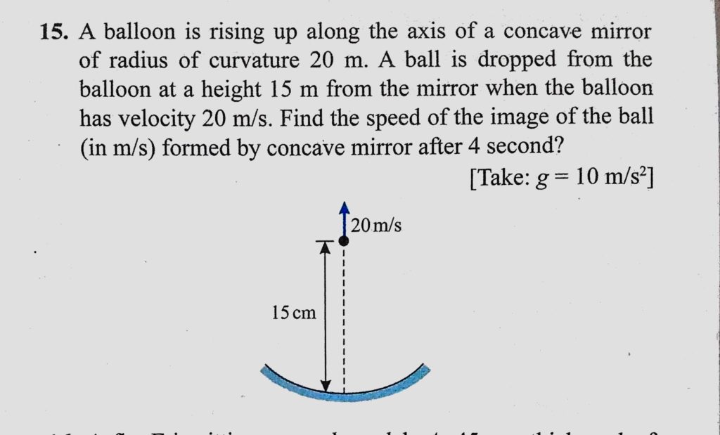 A balloon is rising up along the axis of a concave mirror of radius of curvature 20 m. A ball is dropped from the balloon at a height 15 m from the mirror when the balloon has velocity A balloon is rising up along the axis of a concave mirror of radius of curvature 20 m. A ball is dropped from the balloon at a height 15 m from the mirror when the balloon has velocity October 7, 2020 Category: Uncategorised (JEE Advanced Physics by BM Sharma + GMP Solutions) , Facebook Messenger WhatsApp Share this:TwitterFacebook Related