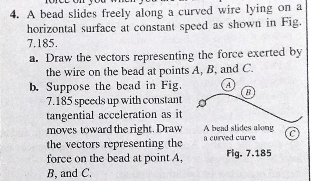 A beads slides freely along a curved wire lying on a horizontal surface at constant speed as shown in Fig. 7.185. a. Draw the vectors representing the force exerted by the wire on the bead A beads slides freely along a curved wire lying on a horizontal surface at constant speed as shown in Fig. 7.185. a. Draw the vectors representing the force exerted by the wire on the bead September 30, 2020 Category: Uncategorised (JEE Advanced Physics by BM Sharma + GMP Solutions) , Facebook Messenger WhatsApp Share this:TwitterFacebook Related