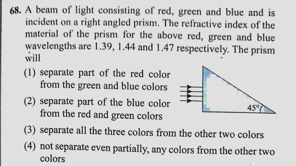 A beam of light consisting of red, green and blue and is incident on a right angled prism. The refractive index of the material of the prism for the above red, green and blue wavelengths A beam of light consisting of red green and blue and is incident on a right angled prism. The refractive index of the material of the prism for the above red green and blue wavelengths October 6, 2020 Category: Uncategorised (JEE Advanced Physics by BM Sharma + GMP Solutions) , Facebook Messenger WhatsApp Share this:TwitterFacebook Related