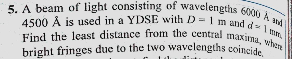 A beam of light consisting of wavelengths 6000 A and 4500 A is used in a YDSE with D = 1 m and d = 1 mm. Find the least distance from the central maxima, where bright fringes due to A beam of light consisting of wavelengths 6000 A and 4500 A is used in a YDSE with D = 1 m and d = 1 mm. Find the least distance from the central maxima where bright fringes due to October 9, 2020 Category: Uncategorised (JEE Advanced Physics by BM Sharma + GMP Solutions) , Facebook Messenger WhatsApp Share this:TwitterFacebook Related