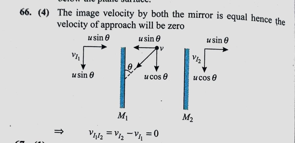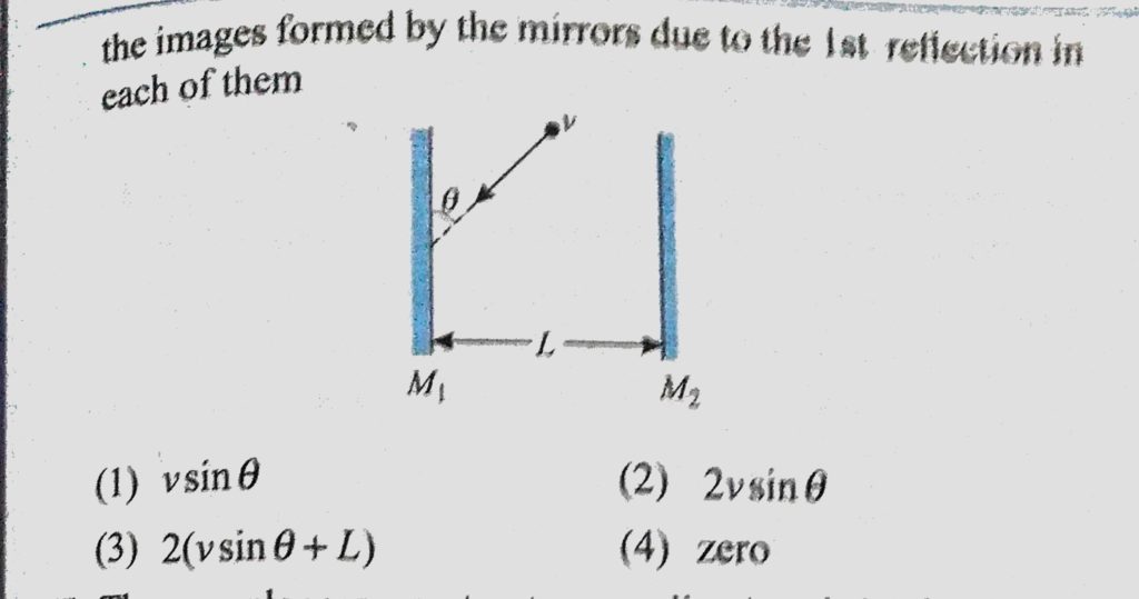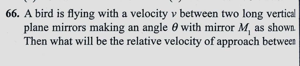 A bird is flying with a velocity v between two long vertical plane mirrors making an angle theta with mirror M1 as shown. Then what will be the relative velocity of approach between A bird is flying with a velocity v between two long vertical plane mirrors making an angle theta with mirror M1 as shown. Then what will be the relative velocity of approach between October 6, 2020 Category: Uncategorised (JEE Advanced Physics by BM Sharma + GMP Solutions) , Facebook Messenger WhatsApp Share this:TwitterFacebook Related