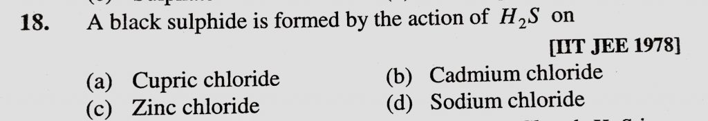 A black sulphide is formed by the action of H2S on (a) Cupric chloride (b) Cadmium chloride A black sulphide is formed by the action of H2S on (a) Cupric chloride (b) Cadmium chloride December 7, 2020 Category: Uncategorised (JEE Advanced Physics by BM Sharma + GMP Solutions) , Facebook Messenger WhatsApp Share this:TwitterFacebook Related