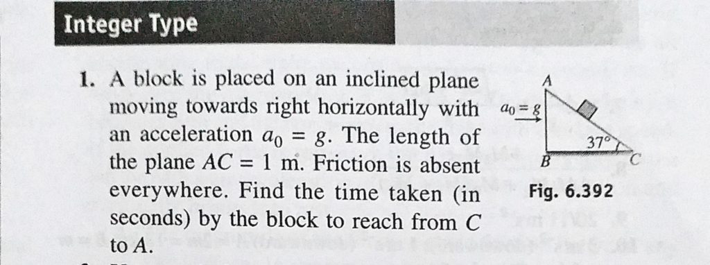A block is placed on an inclined plane moving towards right horizontally with an acceleration a0 = g. The length of the plane AC = 1 m. The length of the plane AC = 1 m. Friction is absent everywhere. A block is placed on an inclined plane moving towards right horizontally with an acceleration a0 = g. The length of the plane AC = 1 m. The length of the plane AC = 1 m. Friction is absent everywhere. September 30, 2020 Category: Uncategorised (JEE Advanced Physics by BM Sharma + GMP Solutions) , Facebook Messenger WhatsApp Share this:TwitterFacebook Related