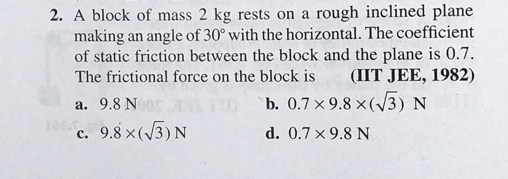 A block of mass 2 kg rests on a rough inclined plane making an angle of 30 with the horizontal. The coefficient of static friction between the block and the plane is 0.7 The frictional force A block of mass 2 kg rests on a rough inclined plane making an angle of 30 with the horizontal. The coefficient of static friction between the block and the plane is 0.7 The frictional force October 2, 2020 Category: Uncategorised (JEE Advanced Physics by BM Sharma + GMP Solutions) , Facebook Messenger WhatsApp Share this:TwitterFacebook Related