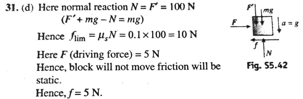A block of mass m is kept on the floor of a freely falling lift. During the free fall of the lift, the block is pulled horizontally with a force of F = 5N. μs = 0.1. The frictional force on the block will be A block of mass m is kept on the floor of a freely falling lift. During the free fall of the lift the block is pulled horizontally with a force of F = 5N. μs = 0.1. The frictional force on the block will be December 6, 2020 Category: Uncategorised (JEE Advanced Physics by BM Sharma + GMP Solutions) , Facebook Messenger WhatsApp Share this:TwitterFacebook Related