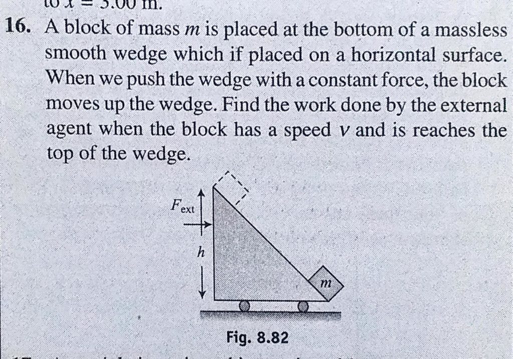 A block of mass m is placed at the bottom of a massless smooth wedge which if placed on a horizontal surface. When we push the wedge with a constant force, the block moves up the wedge. A block of mass m is placed at the bottom of a massless smooth wedge which if placed on a horizontal surface. When we push the wedge with a constant force the block moves up the wedge. October 2, 2020 Category: Uncategorised (JEE Advanced Physics by BM Sharma + GMP Solutions) , Facebook Messenger WhatsApp Share this:TwitterFacebook Related