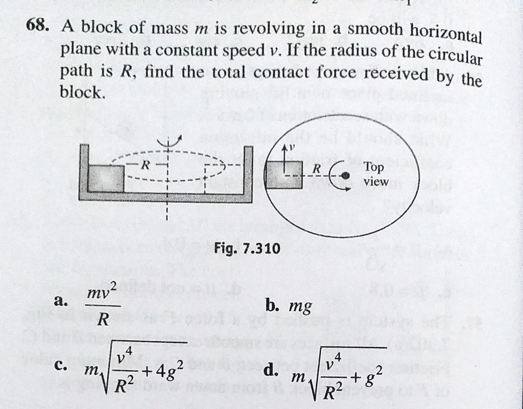 A block of mass m is revolving in a smooth horizontal plane with a constant speed v. If the radius of the circular path is R, find the total contact force received by the block. A block of mass m is revolving in a smooth horizontal plane with a constant speed v. If the radius of the circular path is R find the total contact force received by the block. October 1, 2020 Category: Uncategorised (JEE Advanced Physics by BM Sharma + GMP Solutions) , Facebook Messenger WhatsApp Share this:TwitterFacebook Related