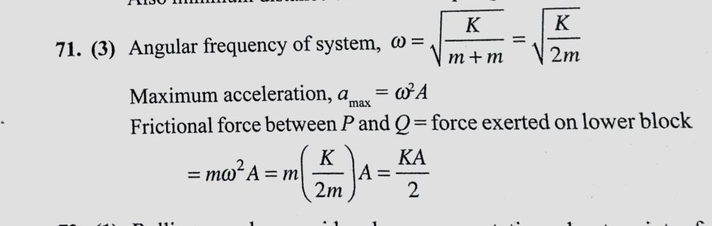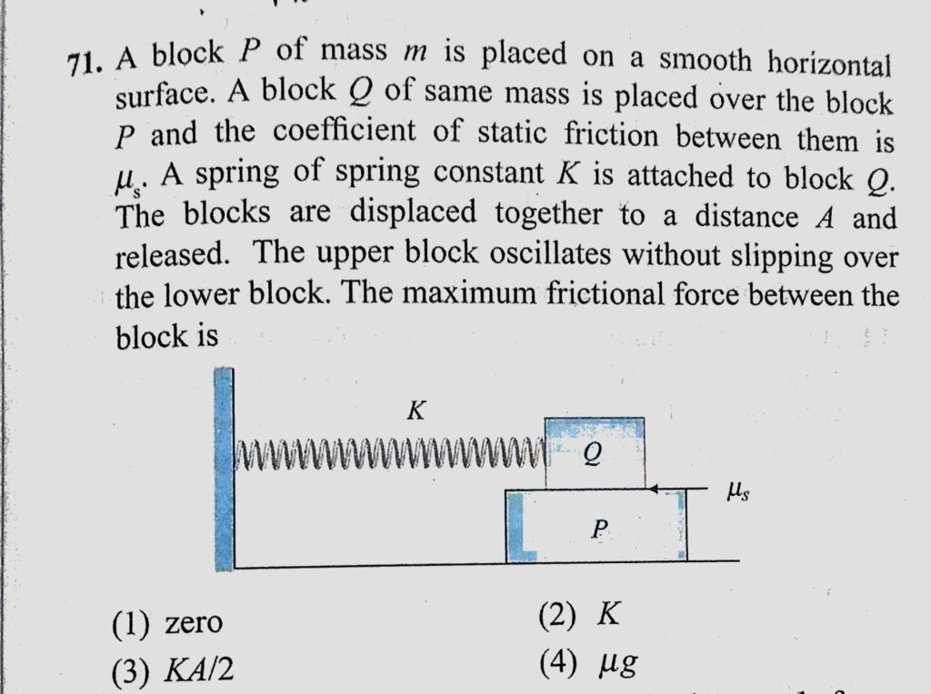 A block P of mass m is placed on a smooth horizontal surface. A block Q of same mass is placed over the block P and the coefficient of static friction between them is mu s. A spring A block P of mass m is placed on a smooth horizontal surface. A block Q of same mass is placed over the block P and the coefficient of static friction between them is mu s. A spring October 31, 2020 Category: Uncategorised (JEE Advanced Physics by BM Sharma + GMP Solutions) , Facebook Messenger WhatsApp Share this:TwitterFacebook Related