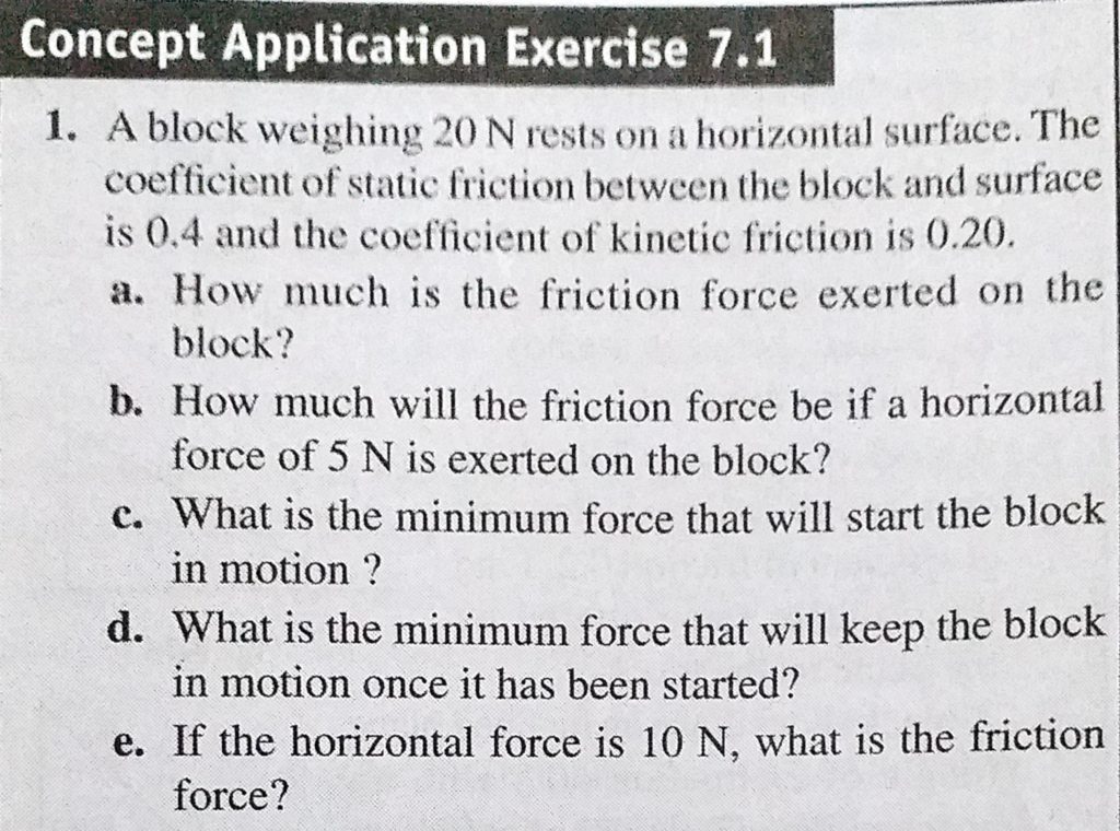 A block weighing 20 N rests on a horizontal surface. The coefficient of static friction between the block and surface is 0.4 and the coefficient of kinetic friction is 0.20. A block weighing 20 N rests on a horizontal surface. The coefficient of static friction between the block and surface is 0.4 and the coefficient of kinetic friction is 0.20. September 30, 2020 Category: Uncategorised (JEE Advanced Physics by BM Sharma + GMP Solutions) , Facebook Messenger WhatsApp Share this:TwitterFacebook Related