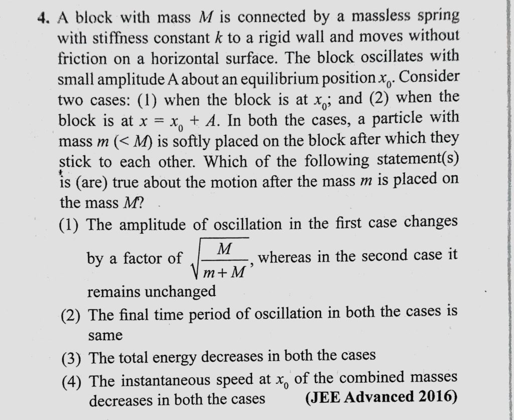 A block with mass M is connected by a massless spring with stiffness constant k to a rigid wall and moves without friction on a horizontal surface. The block oscillates with small A block with mass M is connected by a massless spring with stiffness constant k to a rigid wall and moves without friction on a horizontal surface. The block oscillates with small November 1, 2020 Category: Uncategorised (JEE Advanced Physics by BM Sharma + GMP Solutions) , Facebook Messenger WhatsApp Share this:TwitterFacebook Related
