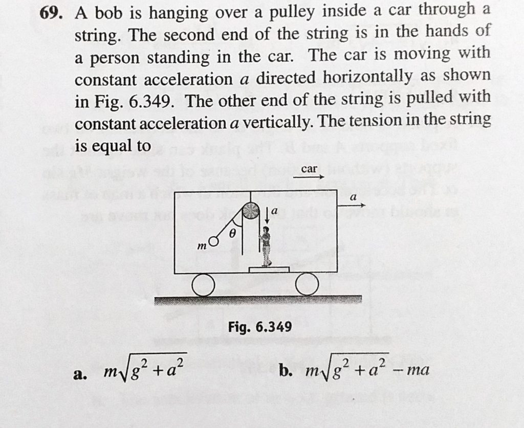 A bob is hanging over a pulley inside a car through a string. The second end of the string is in the hands of a person standing in the car. The car is moving with constant acceleration a directed horizontally In Fig. 6.347 the acceleration of A is aA = 15i + 15j. Then the acceleration of B is September 29, 2020 Category: Uncategorised (JEE Advanced Physics by BM Sharma + GMP Solutions) , Facebook Messenger WhatsApp Share this:TwitterFacebook Related