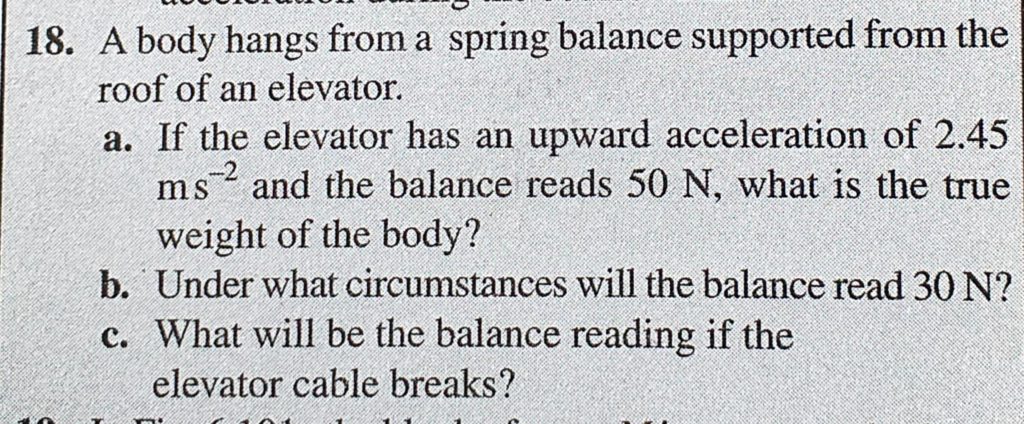 A body hangs from a spring balance supported from the roof of an elevator. a. If the elevator has an upward acceleration of 2.45 m/s^2 and the balance reads 50 N, what is the true A body hangs from a spring balance supported from the roof of an elevator. a. If the elevator has an upward acceleration of 2.45 m/s^2 and the balance reads 50 N what is the true September 25, 2020 Category: Uncategorised (JEE Advanced Physics by BM Sharma + GMP Solutions) , Facebook Messenger WhatsApp Share this:TwitterFacebook Related