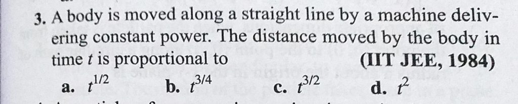 A body is moved along a straight line by a machine delivering constant power. The distance moved by the body in time t is proportional to A body is moved along a straight line by a machine delivering constant power. The distance moved by the body in time t is proportional to October 5, 2020 Category: Uncategorised (JEE Advanced Physics by BM Sharma + GMP Solutions) , Facebook Messenger WhatsApp Share this:TwitterFacebook Related