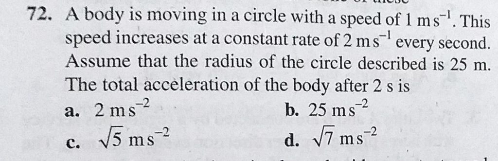 A body is moving in a circle with a speed of 1 m/s. This speed increases at a constant rate of 2 m/s every second. Assume that the radius of the circle described is 25 m. The total acceleration of the body A body is projected with velocity v1 from the point A as shown in Fig. 5.203. At the same time another body is projected vertically upwards from B with velocity v2. The point B lies vertically below the highest point September 24, 2020 Category: Uncategorised (JEE Advanced Physics by BM Sharma + GMP Solutions) , Facebook Messenger WhatsApp Share this:TwitterFacebook Related