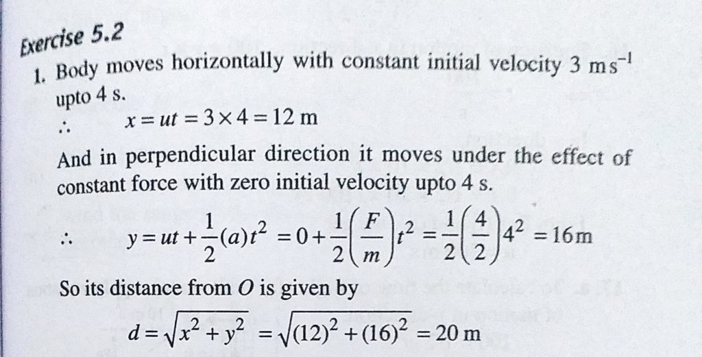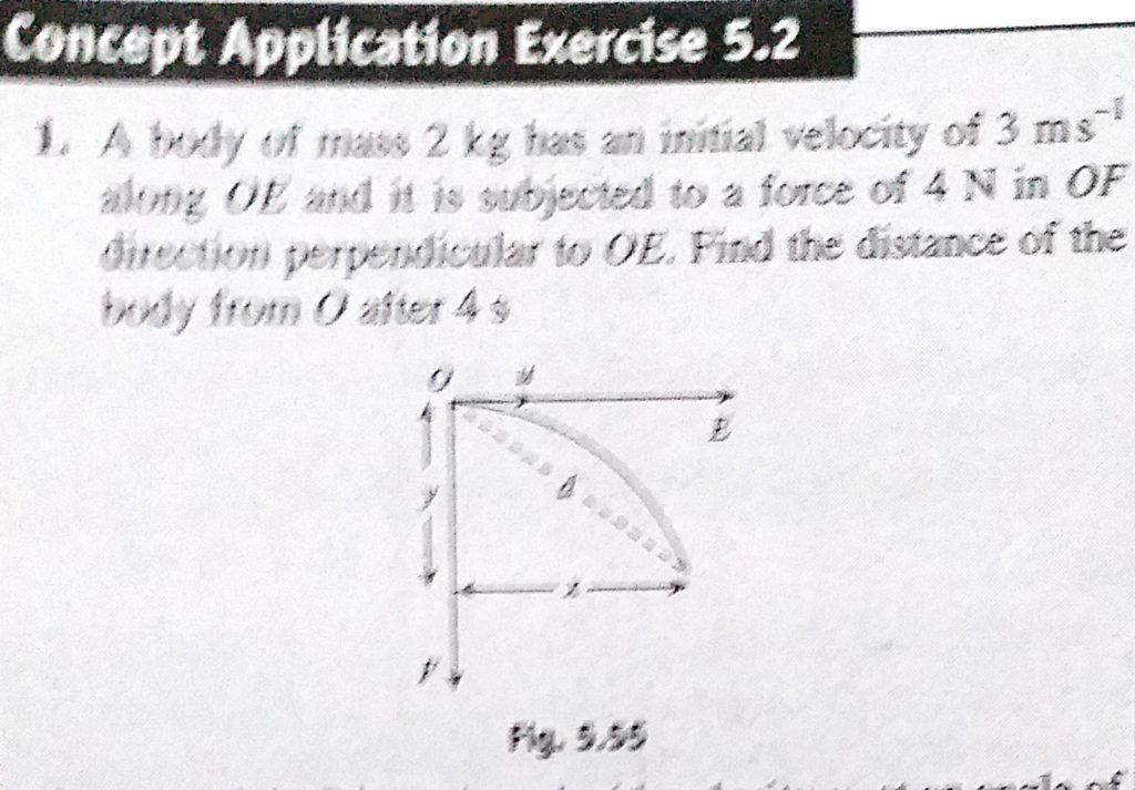 A body of mass 2 kg has an initial velocity of 3 m/s along OE and it is subjected to a force of 4 N in OF direction perpendicular to OE. Find the distance of the body from O after 4 s. A body of mass 2 kg has an initial velocity of 3 m/s along OE and it is subjected to a force of 4 N in OF direction perpendicular to OE. Find the distance of the body from O after 4 s. September 21, 2020 Category: Uncategorised (JEE Advanced Physics by BM Sharma + GMP Solutions) , Facebook Messenger WhatsApp Share this:TwitterFacebook Related
