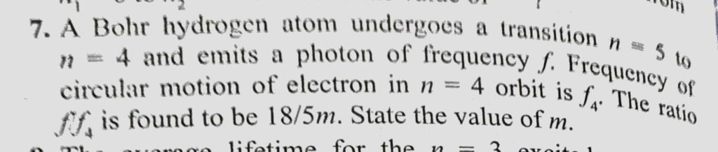 A Bohr hydrogen atom undergoes a transition n = 5 to n = 4 and emits a photon of frequency f. Frequency of circular motion of electron in n = 4 orbit is f4. The ratio ff4 is found A Bohr hydrogen atom undergoes a transition n = 5 to n = 4 and emits a photon of frequency f. Frequency of circular motion of electron in n = 4 orbit is f4. The ratio ff4 is found October 16, 2020 Category: Uncategorised (JEE Advanced Physics by BM Sharma + GMP Solutions) , Facebook Messenger WhatsApp Share this:TwitterFacebook Related