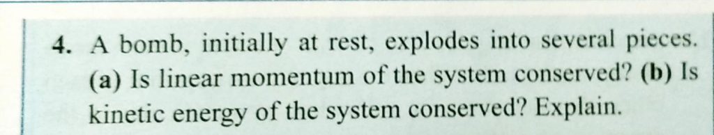 A bomb, intially at rest, explodes into serval pieces. (a) Is linear momentum of the system conserved ? (b) Is kinetic energy of the system conserved ? Explain. A bomb explodes into serval pieces. (a) Is linear momentum of the system conserved ? (b) Is kinetic energy of the system conserved ? Explain. intially at rest September 20, 2020 Category: Uncategorised (JEE Advanced Physics by BM Sharma + GMP Solutions) , Facebook Messenger WhatsApp Share this:TwitterFacebook Related