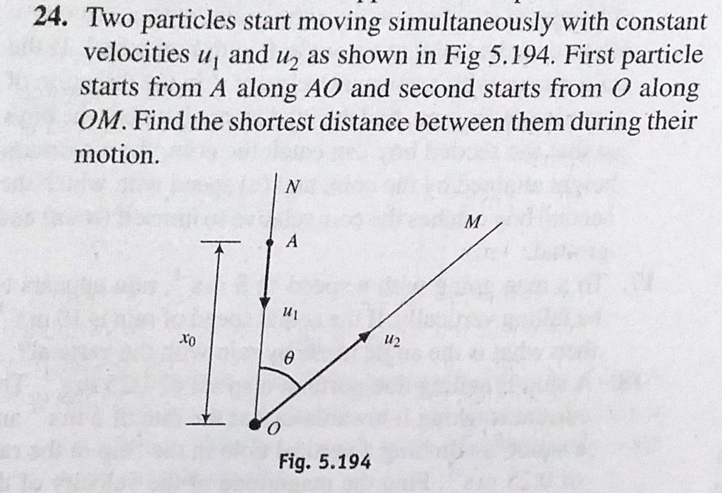 Two particles start moving simultaneously with constant velocities u1 and u2 as shown in Fig 5.194. First particle starts from A along AO and second starts from O along OM. Two particles start moving simultaneously with constant velocities u1 and u2 as shown in Fig 5.194. First particle starts from A along AO and second starts from O along OM. September 22, 2020 Category: Uncategorised (JEE Advanced Physics by BM Sharma + GMP Solutions) , Facebook Messenger WhatsApp Share this:TwitterFacebook Related