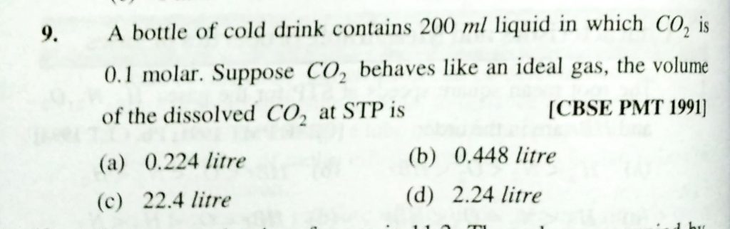 A bottle of cold drink contains 200 ml liquid in which CO2 is 0.1 molar . suppose CO2 behaves like an ideal gas , the volume of the dissolved CO2 at STP is A bottle of cold drink contains 200 ml liquid in which CO2 is 0.1 molar . suppose CO2 behaves like an ideal gas the volume of the dissolved CO2 at STP is February 10, 2021 Category: Uncategorised (JEE Advanced Physics by BM Sharma + GMP Solutions) , Facebook Messenger WhatsApp Share this:TwitterFacebook Related