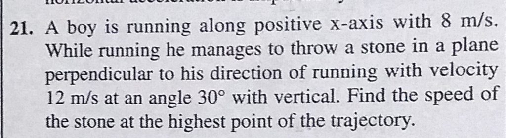 A boy is running along positive x-axis with 8 m/s. While running he manages to throw a stone with velocity 12 m/s at an angle 30 with verticle. Find the speed of the stone at the highest point A boy is running along positive x-axis with 8 m/s. While running he manages to throw a stone with velocity 12 m/s at an angle 30 with verticle. Find the speed of the stone at the highest point September 21, 2020 Category: Uncategorised (JEE Advanced Physics by BM Sharma + GMP Solutions) , Facebook Messenger WhatsApp Share this:TwitterFacebook Related