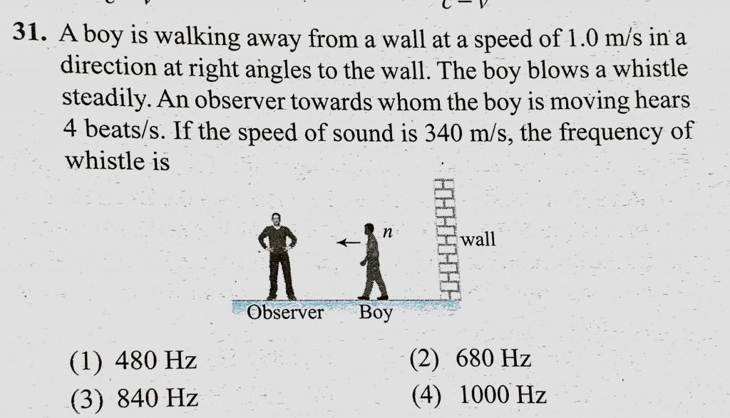 A boy is walking away from a wall at a speed of 1.0 m/s in a direction at right angles to the wall. The boy blows a whistle steadily. An observer towards whom the boy is moving A boy is walking away from a wall at a speed of 1.0 m/s in a direction at right angles to the wall. The boy blows a whistle steadily. An observer towards whom the boy is moving November 7, 2020 Category: Uncategorised (JEE Advanced Physics by BM Sharma + GMP Solutions) , Facebook Messenger WhatsApp Share this:TwitterFacebook Related