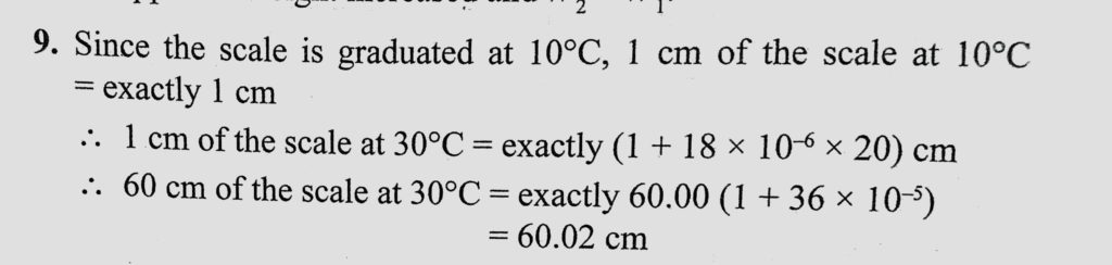 A brass scale is graduated at 10 C. What is the true length of a zinc rod which measures 60.00 cm on this scale at 30 C ? Coefficient of linear expansion of brass = 18 * 10^-6 K^-1. A brass scale is graduated at 10 C. What is the true length of a zinc rod which measures 60.00 cm on this scale at 30 C ? Coefficient of linear expansion of brass = 18 * 10^-6 K^-1. October 23, 2020 Category: Uncategorised (JEE Advanced Physics by BM Sharma + GMP Solutions) , Facebook Messenger WhatsApp Share this:TwitterFacebook Related