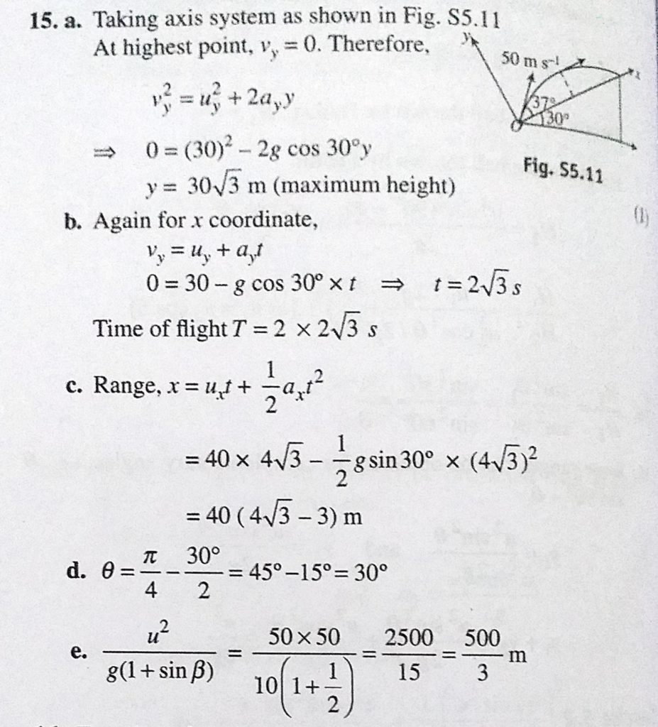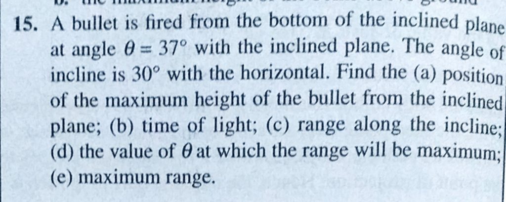 A bullet is fired from the bottom of the inclined plane at angle theta = 37 with the inclined plane. The angle of incline is 30 with the horizontal. Find the (a) position of the maximum height of the bullet from the inclined plane (b) time of light An object is thrown between two tall buildings 180 m from each other. The object thrown horizontally from a window 55 m above the ground from one building strikes a window 10 m above the ground September 21, 2020 Category: Uncategorised (JEE Advanced Physics by BM Sharma + GMP Solutions) , Facebook Messenger WhatsApp Share this:TwitterFacebook Related