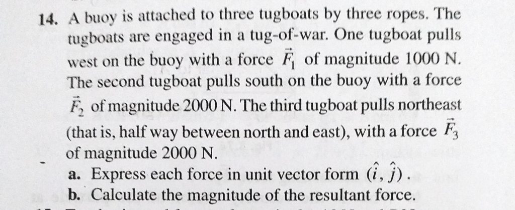 A buoy is attached to three tugboats by three ropes. The tugboats are engaged in a tug of war. One tugboat pulls west on the buoy with a force F1 of magnitude 1000 N. The second tugboat pulls south A buoy is attached to three tugboats by three ropes. The tugboats are engaged in a tug of war. One tugboat pulls west on the buoy with a force F1 of magnitude 1000 N. The second tugboat pulls south September 17, 2020 Category: Uncategorised (JEE Advanced Physics by BM Sharma + GMP Solutions) , Facebook Messenger WhatsApp Share this:TwitterFacebook Related