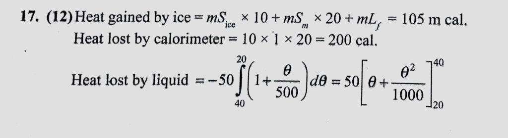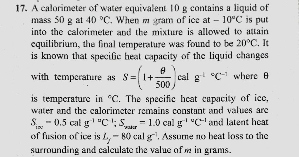 A calorimeter of water equivalent 10 g contains a liquid of mass 50 g at 40 C. When m gram of ice at -10 C is put into the calorimeter and the mixture is allowed to attain equilibrium, A calorimeter of water equivalent 10 g contains a liquid of mass 50 g at 40 C. When m gram of ice at -10 C is put into the calorimeter and the mixture is allowed to attain equilibrium October 24, 2020 Category: Uncategorised (JEE Advanced Physics by BM Sharma + GMP Solutions) , Facebook Messenger WhatsApp Share this:TwitterFacebook Related